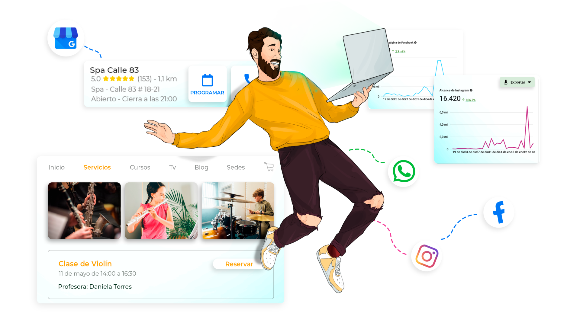 Genera más interacción con tus clientes locales y dales la posibilidad de contactar y reservar en tu negocio sin complicaciones.