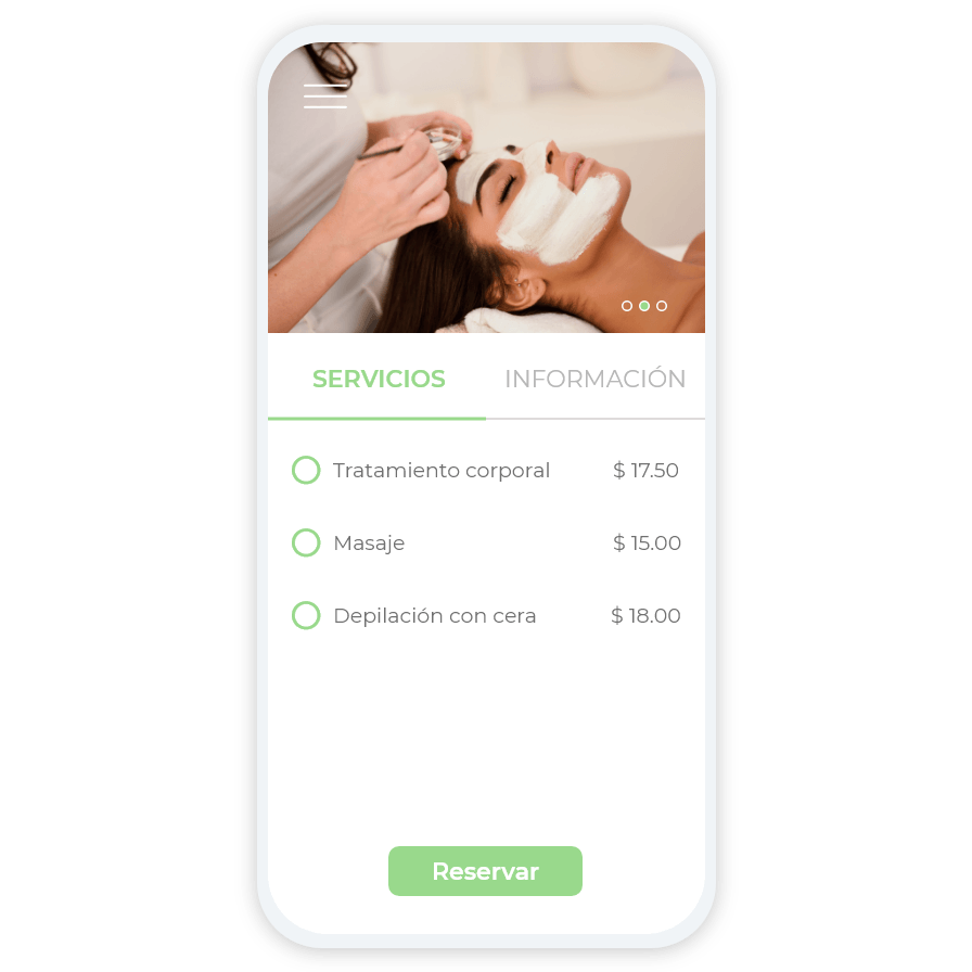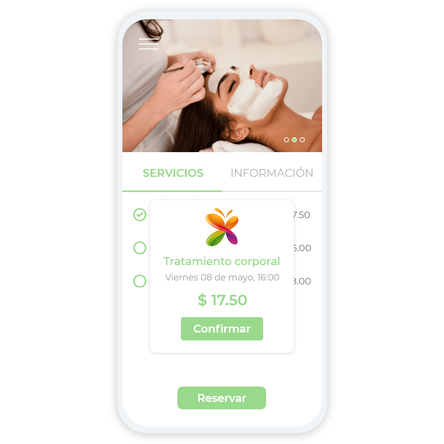Desarrollamos tu app propia para que tus clientes reserven desde donde estén, sin que tengan queinvertir tiempo adicional escribiendo en WhatsApp o haciendo llamadas innecesarias.