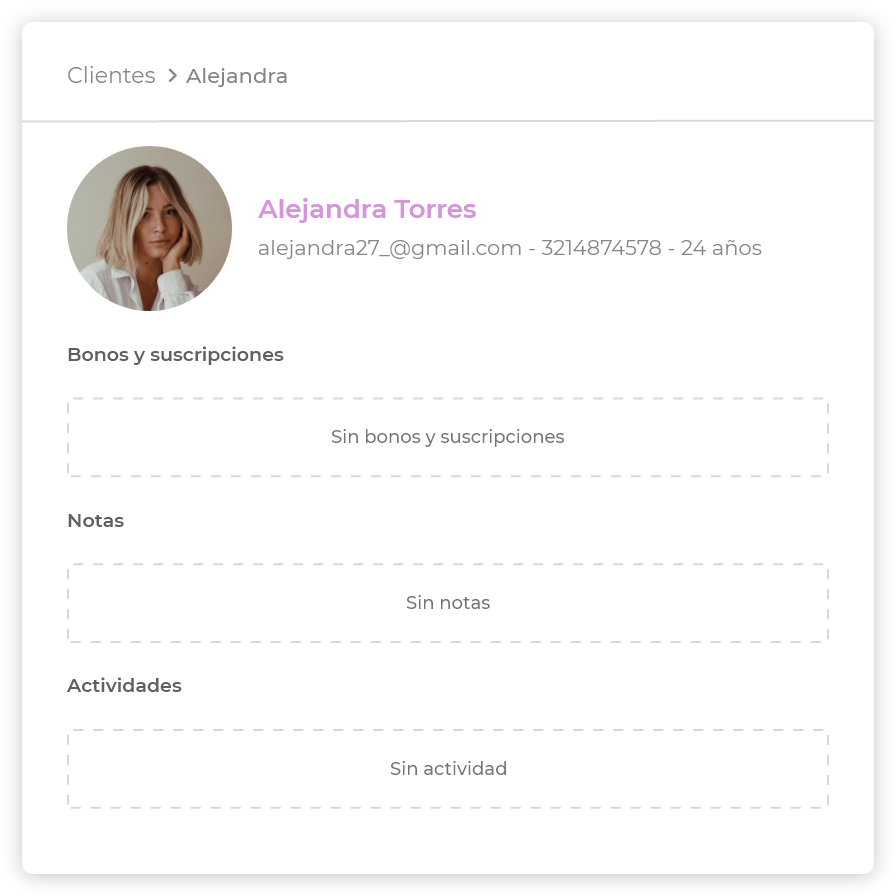 clientes y alójalas en la ficha.