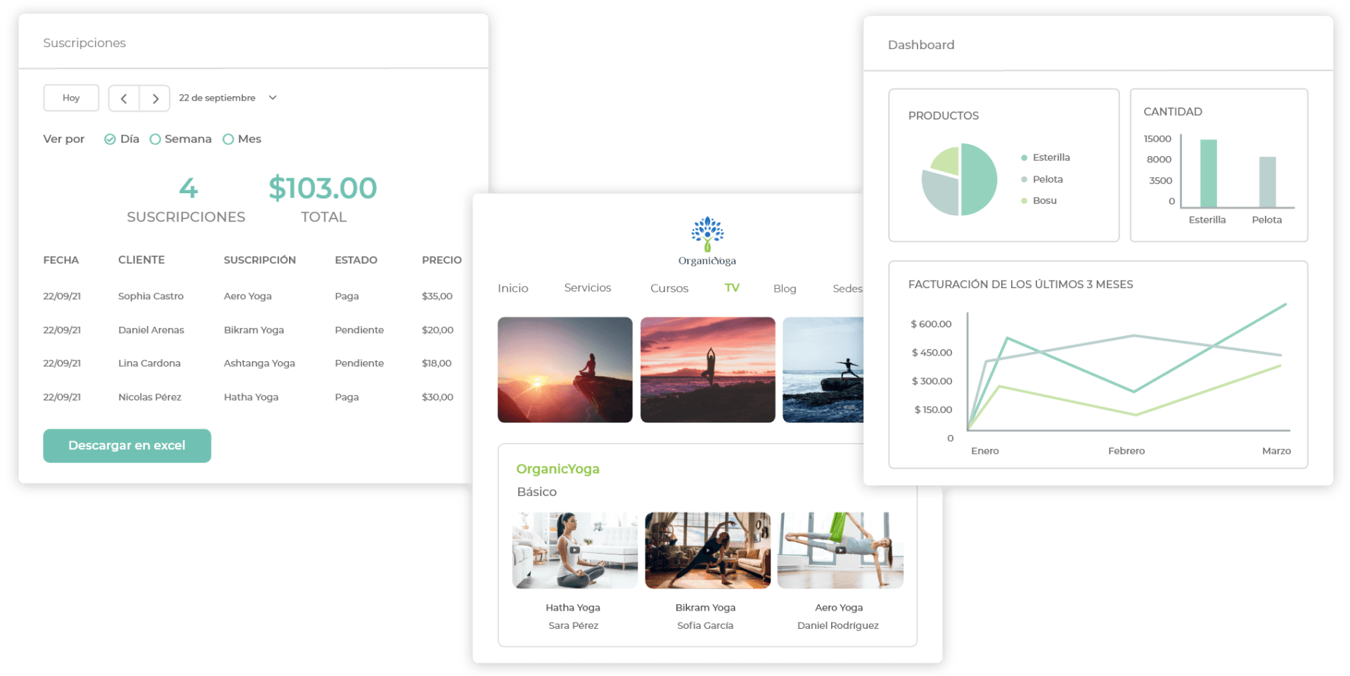 Analiza lo que sucede en tiempo real en tu centro de yoga, personaliza y segmenta en el dashboard con la información que quieras ver y toma decisiones basadas en datos.