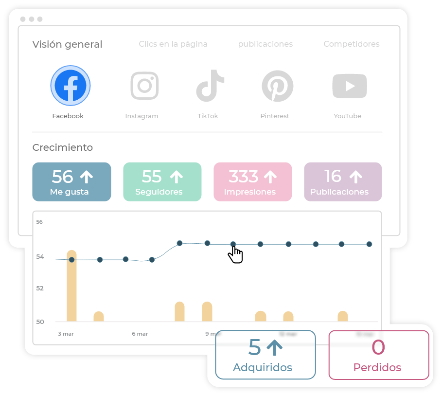 Refuerza tu imagen de marca de forma innovadora con un panel completo que te permita monitorear todo lo que sucede en tus canales digitales, planificar, programar tus contenidos e incluso observar métricas para mejorar tus estrategias.