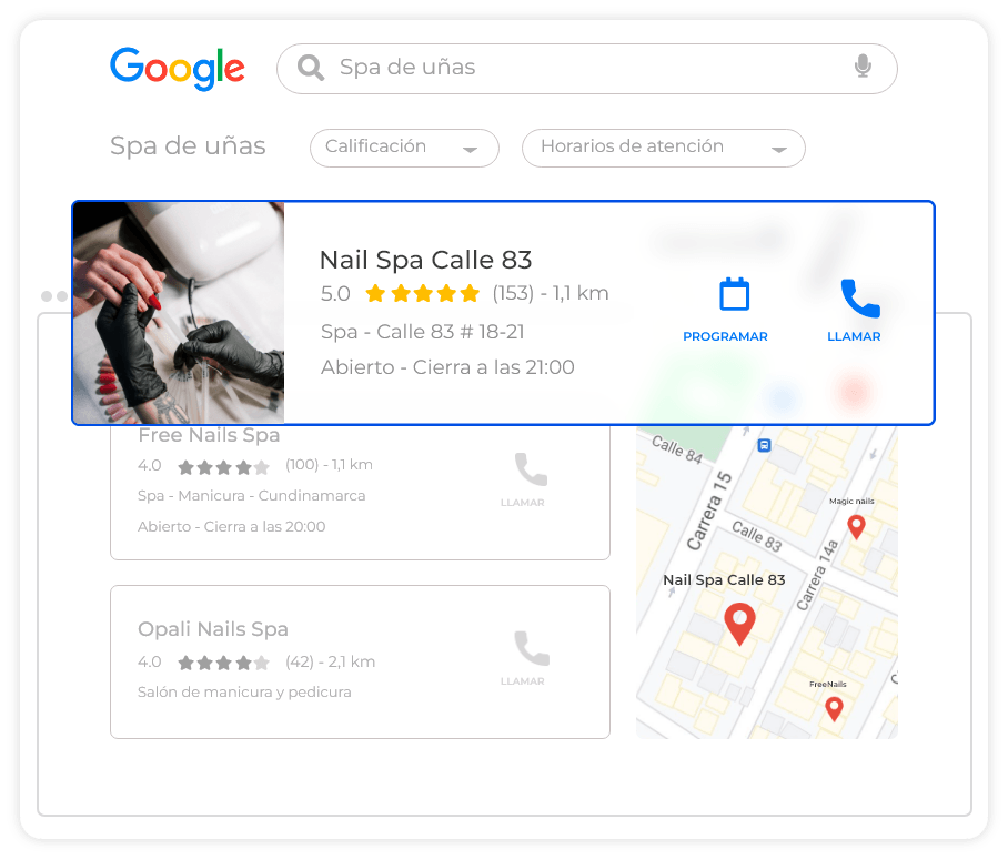 Genera más interacción con tus clientes locales y dales la posibilidad de contactar y reservar en tu negocio sin complicaciones.