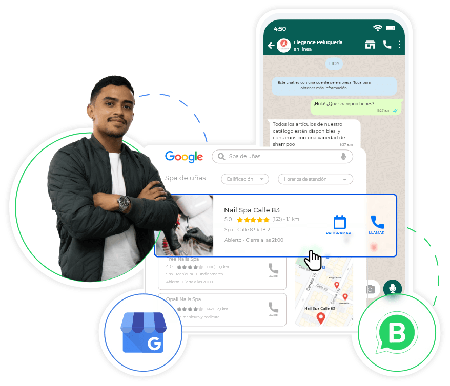 Configuraremos tus herramientas de adquisición online desde Google Business Profile hasta tu WhatsApp Business para que la experiencia de tu usuario sea la mejor desde que te busca en Internet.