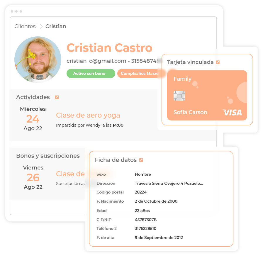 Vincula la tarjeta de tus clientes para hacer pagos y guarda la información en el sistema. Haz que se hagan descuentos de manera automática en el servicio o clase y lleva el control total de lo que lleva tu cliente.